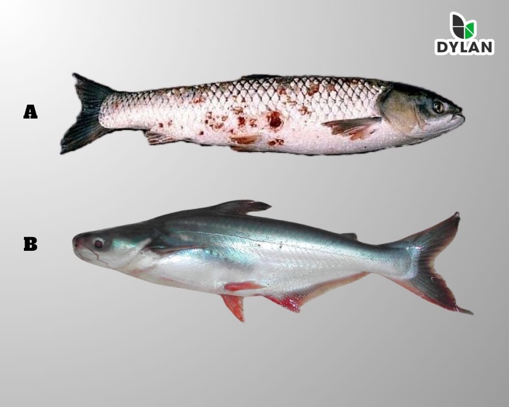 A- Cá trắm cỏ bị bệnh đốm đỏ do vi khuẩn Aeromonas hydrophyla có các đốmđỏ, vẩy rụng, gốc vây xuất huyết;