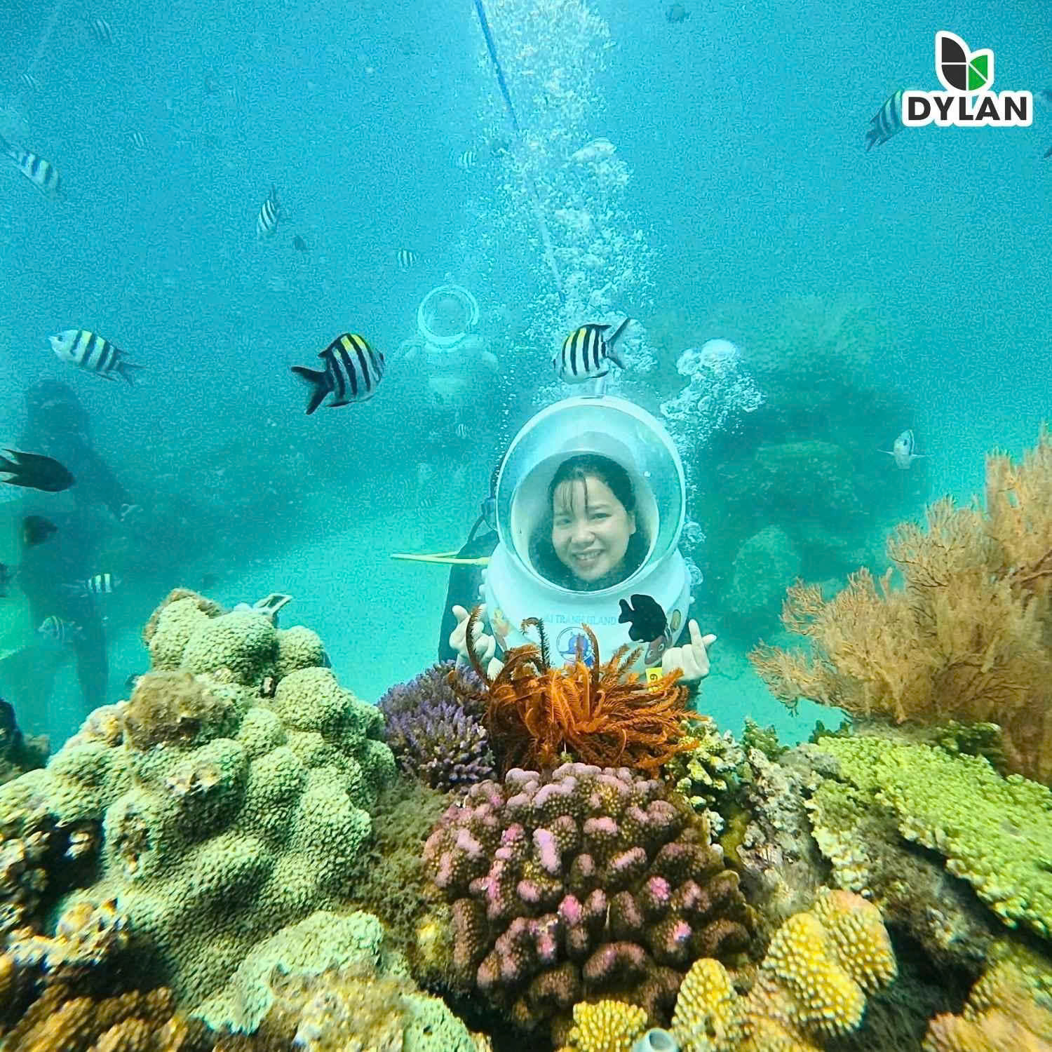 - Tắm biển, lặn ngắm san hô một trò mà với đứa không biết bơi như tôi thì bình thường chỉ dám… ngắm người ta chơi. Vậy mà nhờ đồng đội cổ vũ nhiệt tình, tôi cũng liều mình lao xuống, vừa run vừa cười.